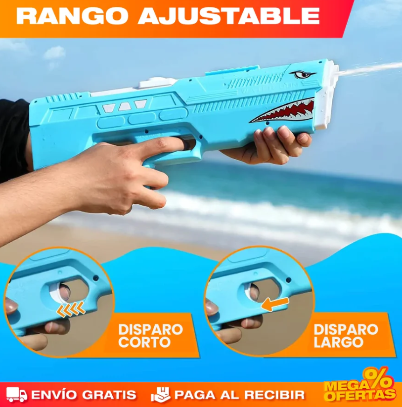 Lanzador de agua con la última tecnología de eyección, donde de forma automática y sólo con presionar el gatillo expulsa el agua a gran velocidad